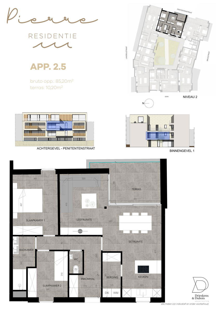 La résidence « Pierre » a été conçue dans un souci d'espace, d'intimité et de durabilité. Ce projet à petite échelle comprend un mélange d'appartements de 2 et 3 chambres à coucher, convenant aux jeunes et aux moins jeunes. Chaque appartement est conçu dans un souci de lumière, de confort et d'architecture moderne, avec le magnifique jardin de la cour et de généreuses ouvertures de fenêtres reliées aux terrasses ensoleillées uniques avec une vue unique, entre autres, sur le jardin tubulaire. Grâce à des caractéristiques durables telles que le chauffage par le sol et les panneaux solaires, vous vivrez ici avec une empreinte écologique minime (Epeil < 30) et un confort maximal. Pour la commodité et le confort de chaque résident, un spacieux abri à vélos et un parking souterrain optionnel + salle de stockage sont disponibles. À la Residentie Pierre, vous vivez à quelques pas du centre-ville, à proximité d'agréables terrasses, de commerces et d'activités culturelles.