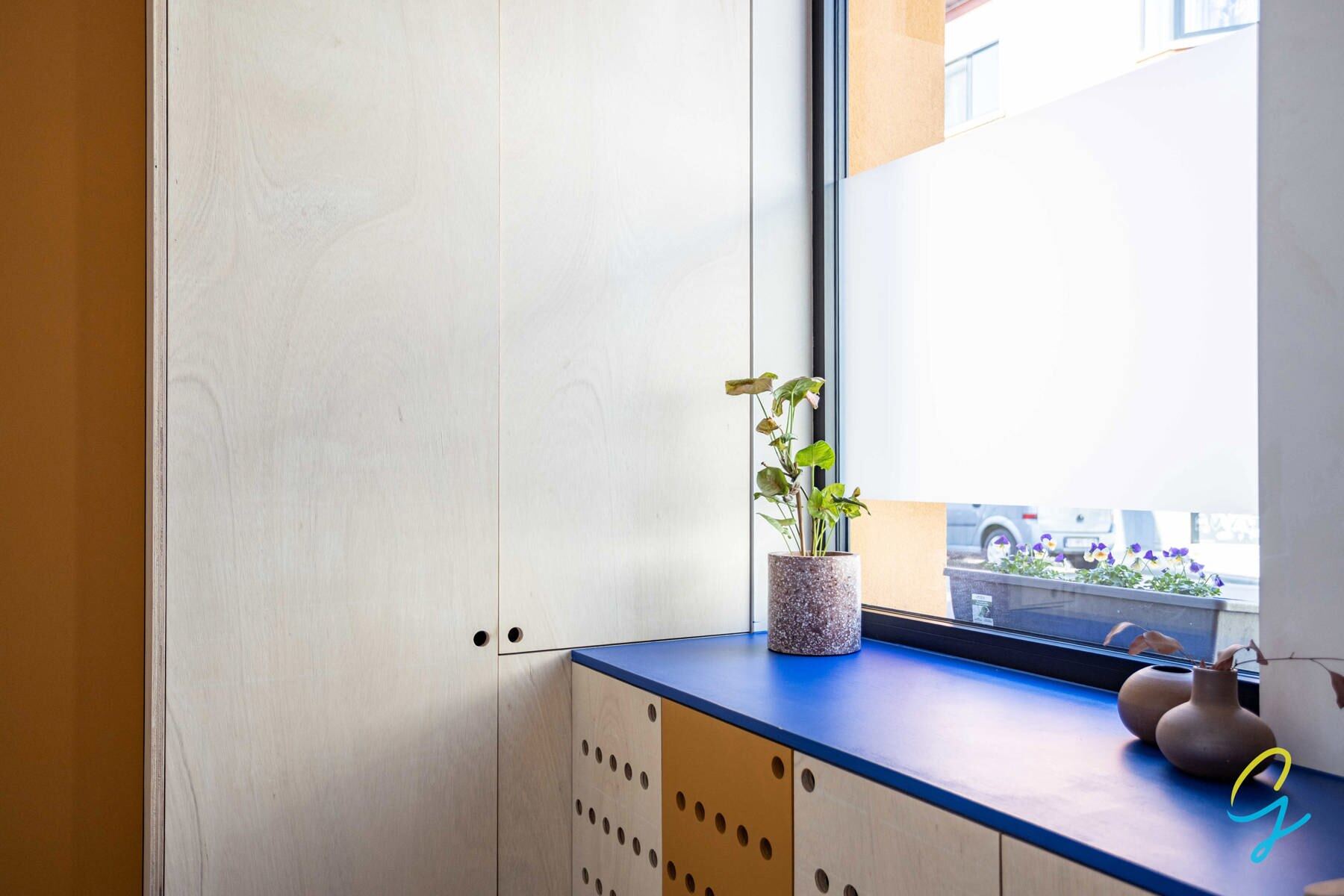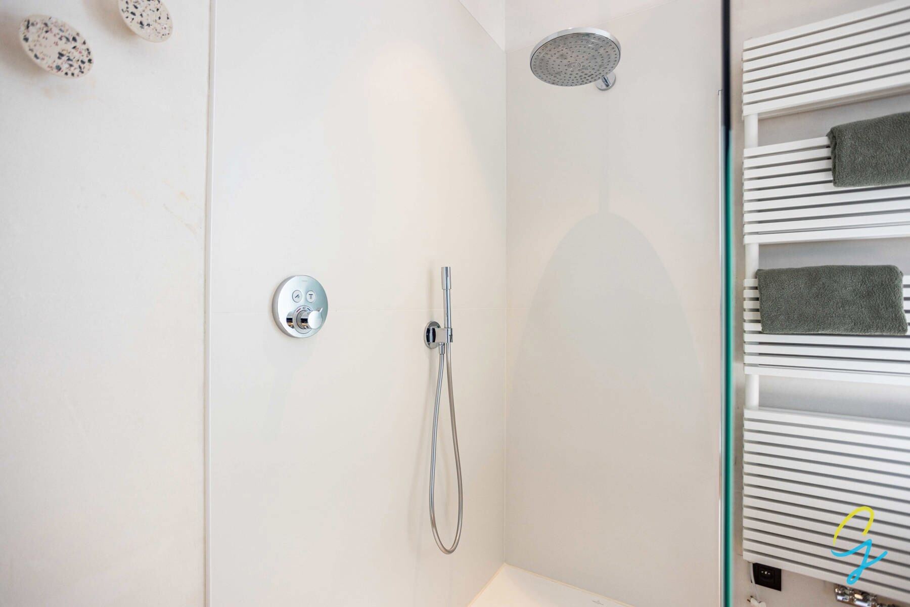 Dès l'entrée, on remarque immédiatement le hall d'entrée soigné, doté de placards intégrés et d'un débarras pratique. La maison est dotée d'un sol en béton coulé avec chauffage au sol, ce qui lui confère un aspect épuré et intemporel.