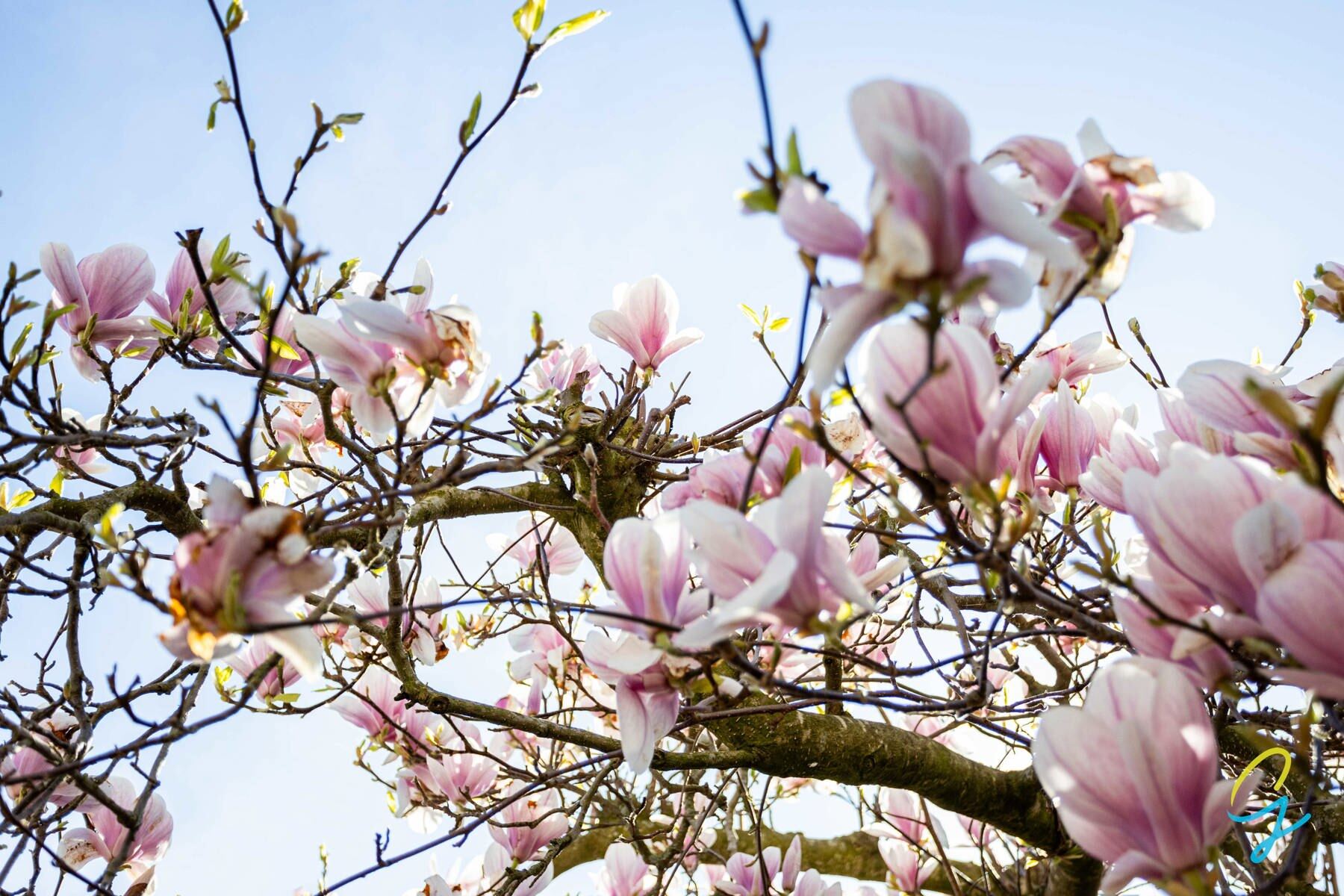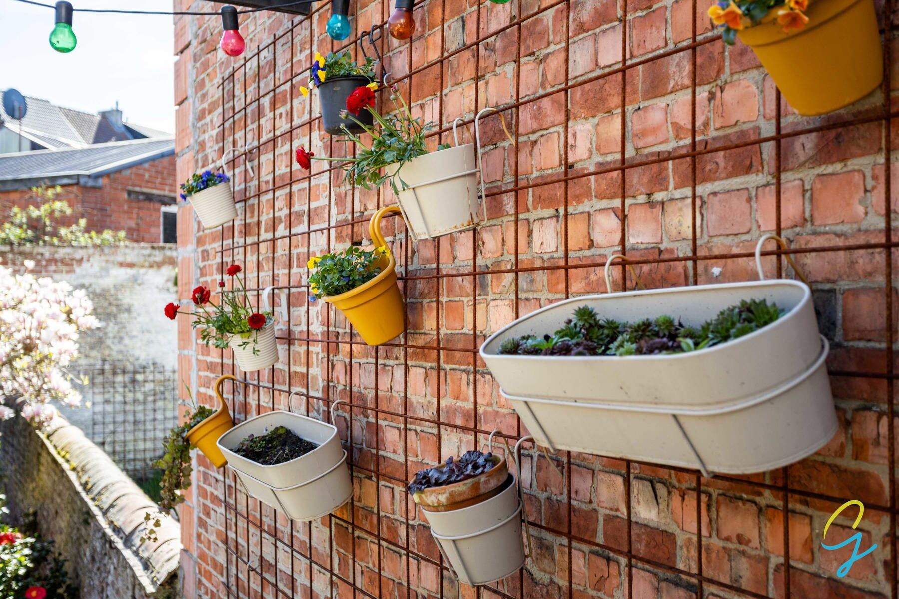Jardin aménagé avec fleurs et arbustes fruitiers