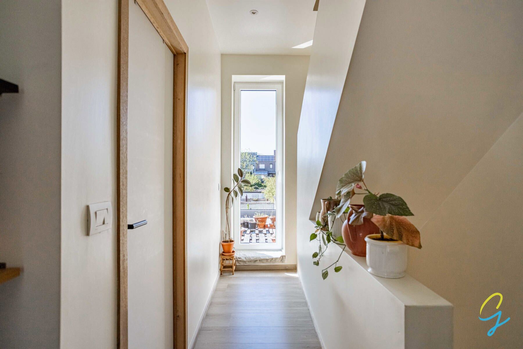 Hall d’entrée spacieux avec toilette invités, local à vélos séparé, espace de rangement pratique, séjour lumineux, cuisine entièrement équipée, rangement supplémentaire et agréable jardin de ville.
