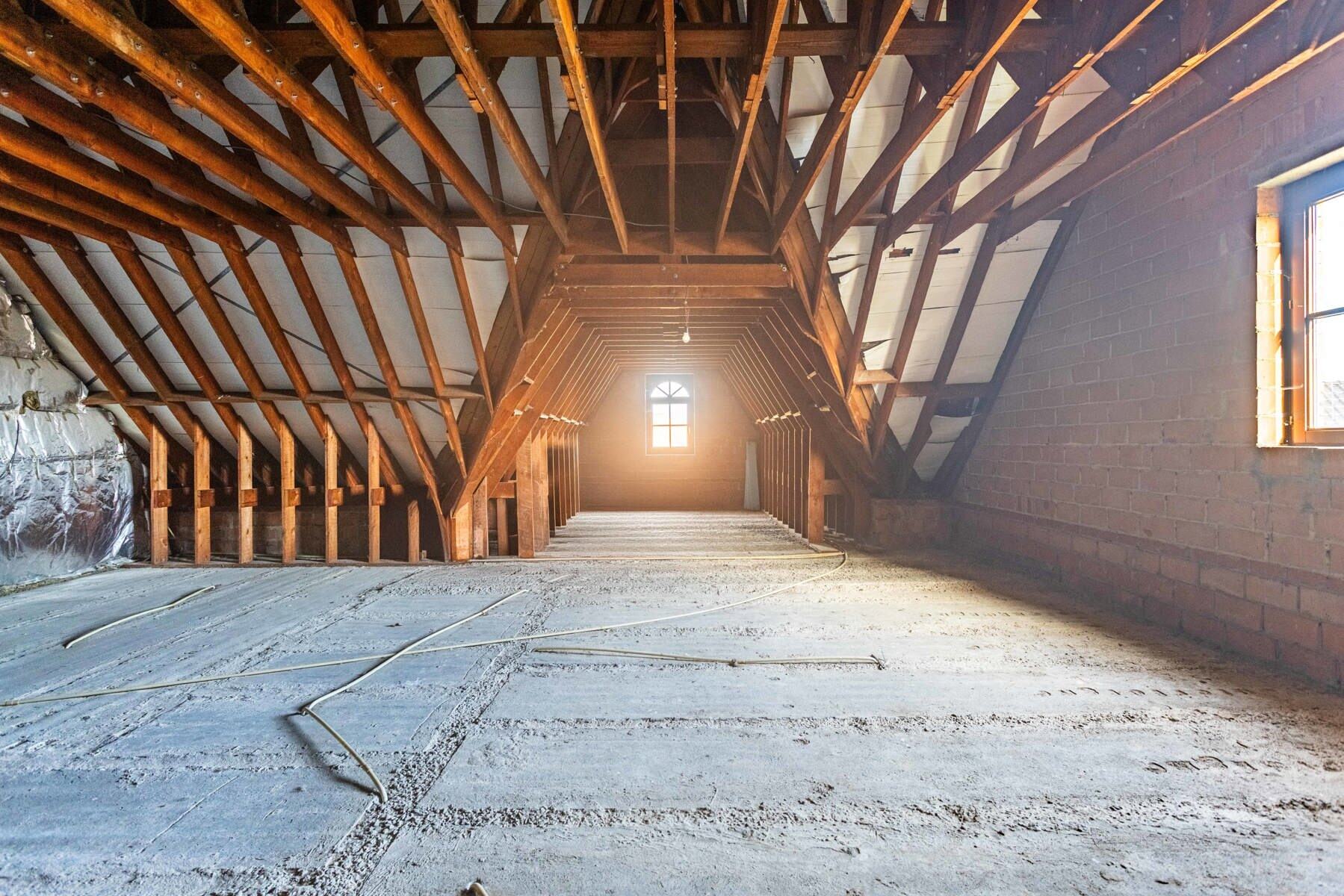 L'étage supérieur sert actuellement de grenier, mais grâce à ses voûtes en béton, il peut parfaitement être aménagé en une deuxième unité d'habitation à part entière.