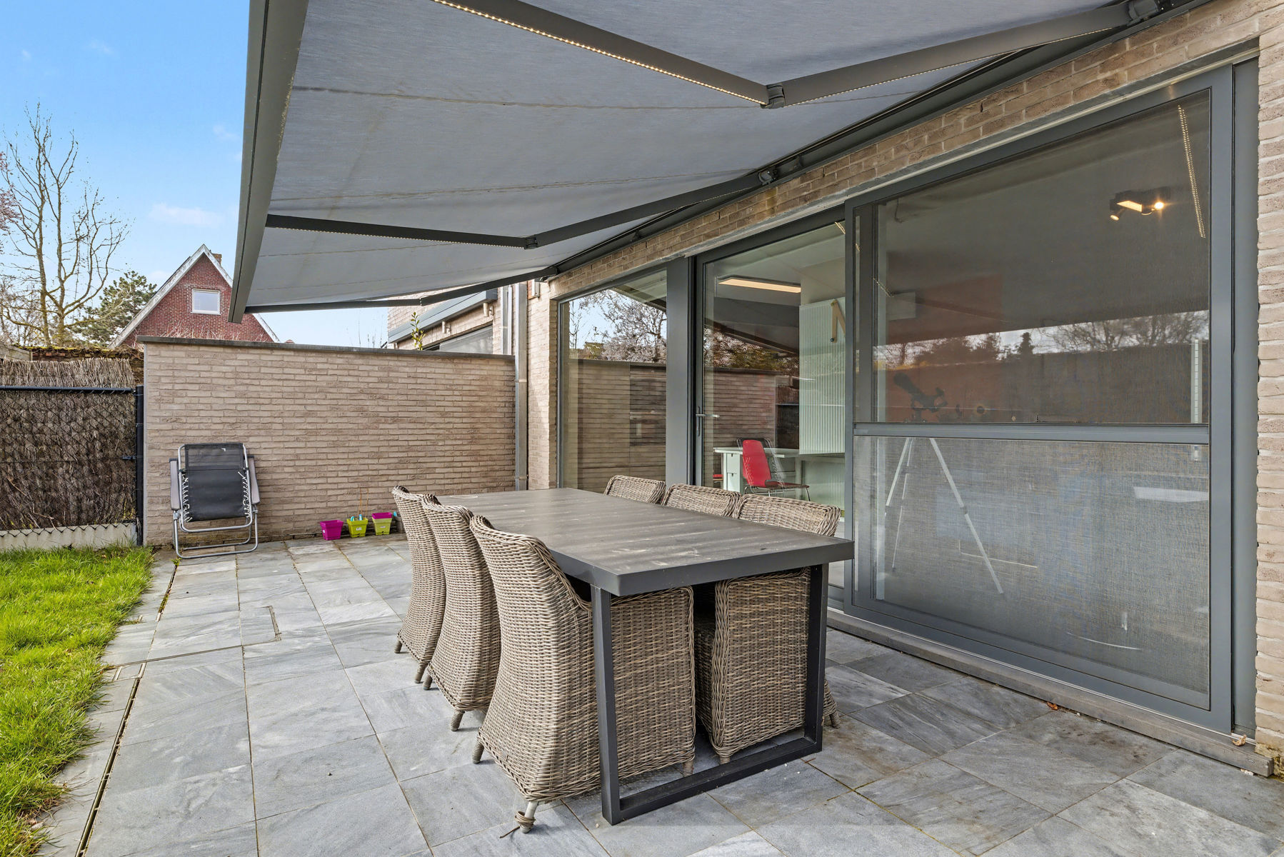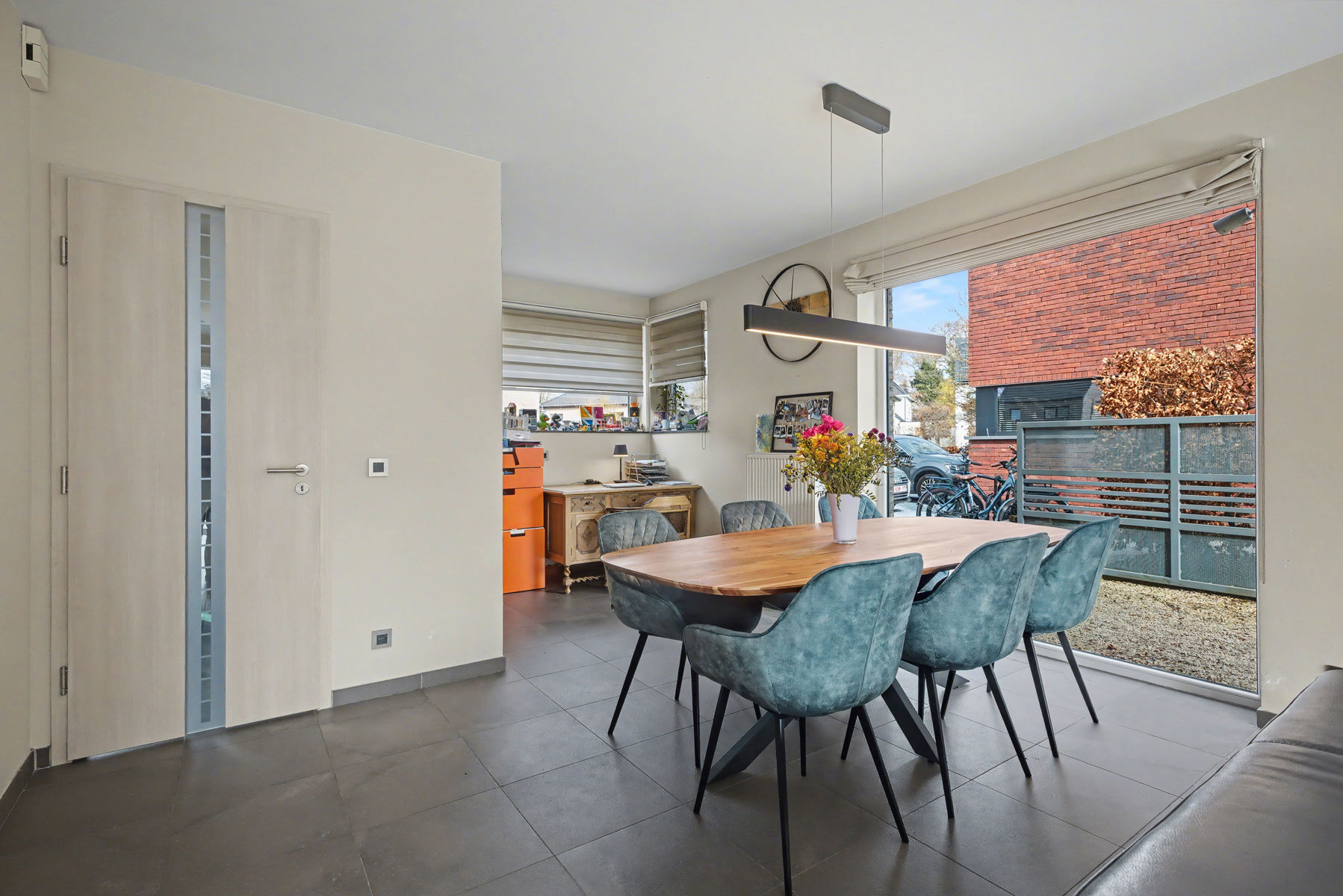 Les grandes baies vitrées laissent entrer beaucoup de lumière et vous offrent un accès direct à la grande terrasse et au jardin clos orienté sud-est, agrémenté d'un abri de jardin.