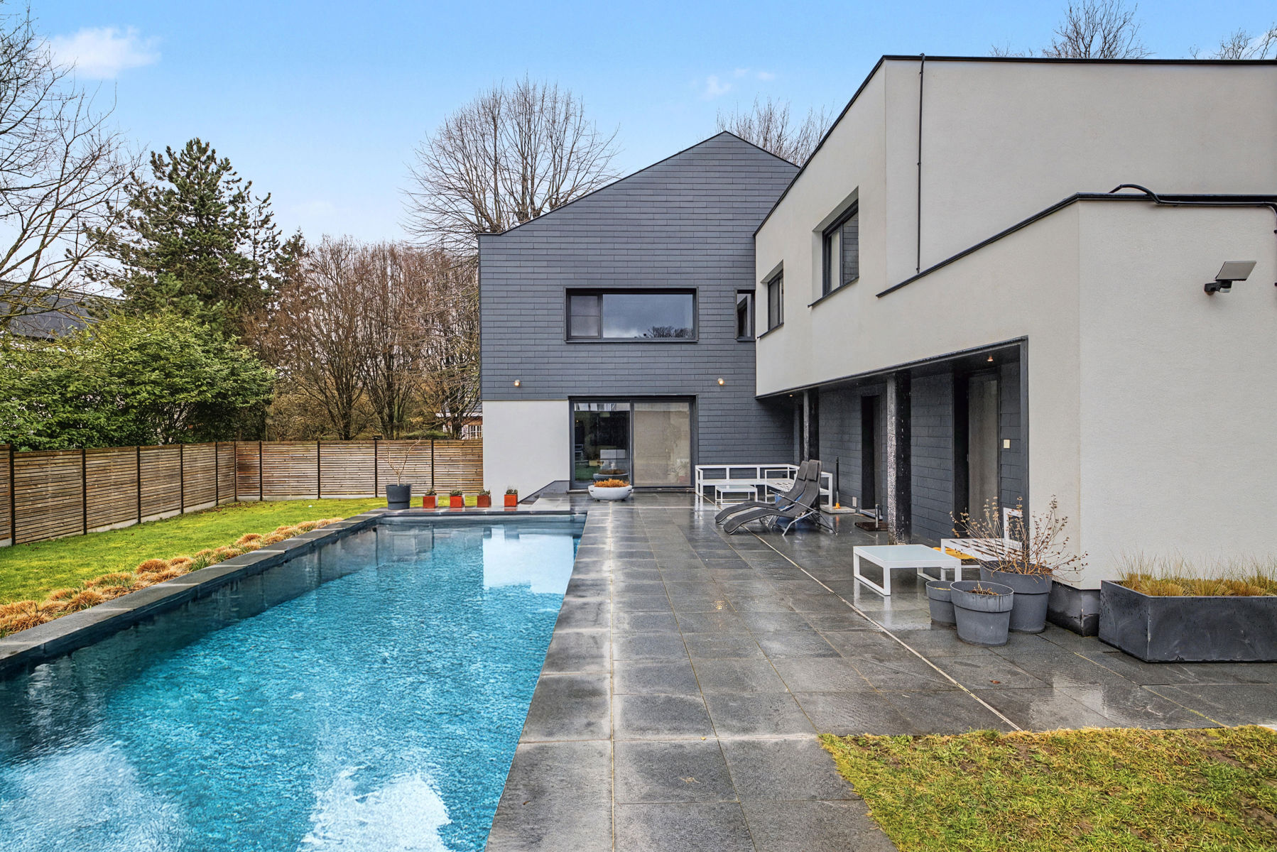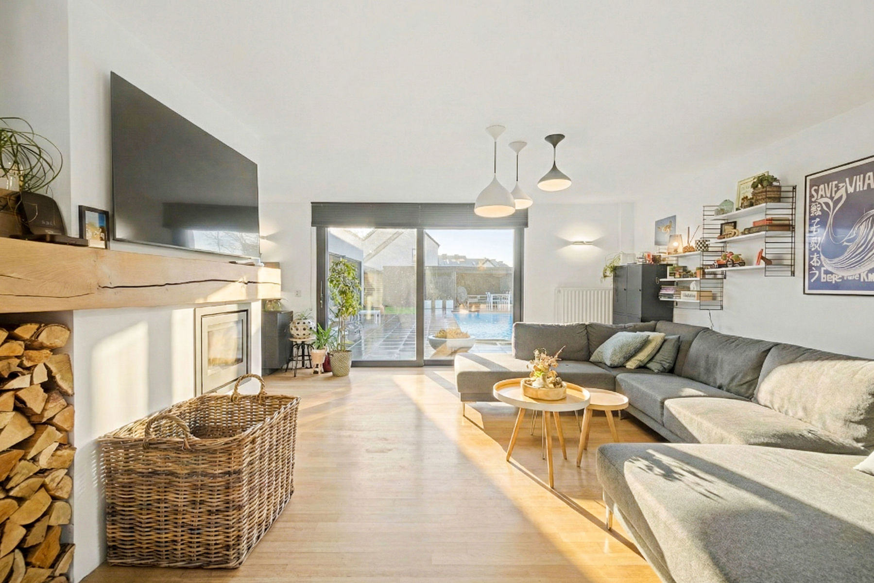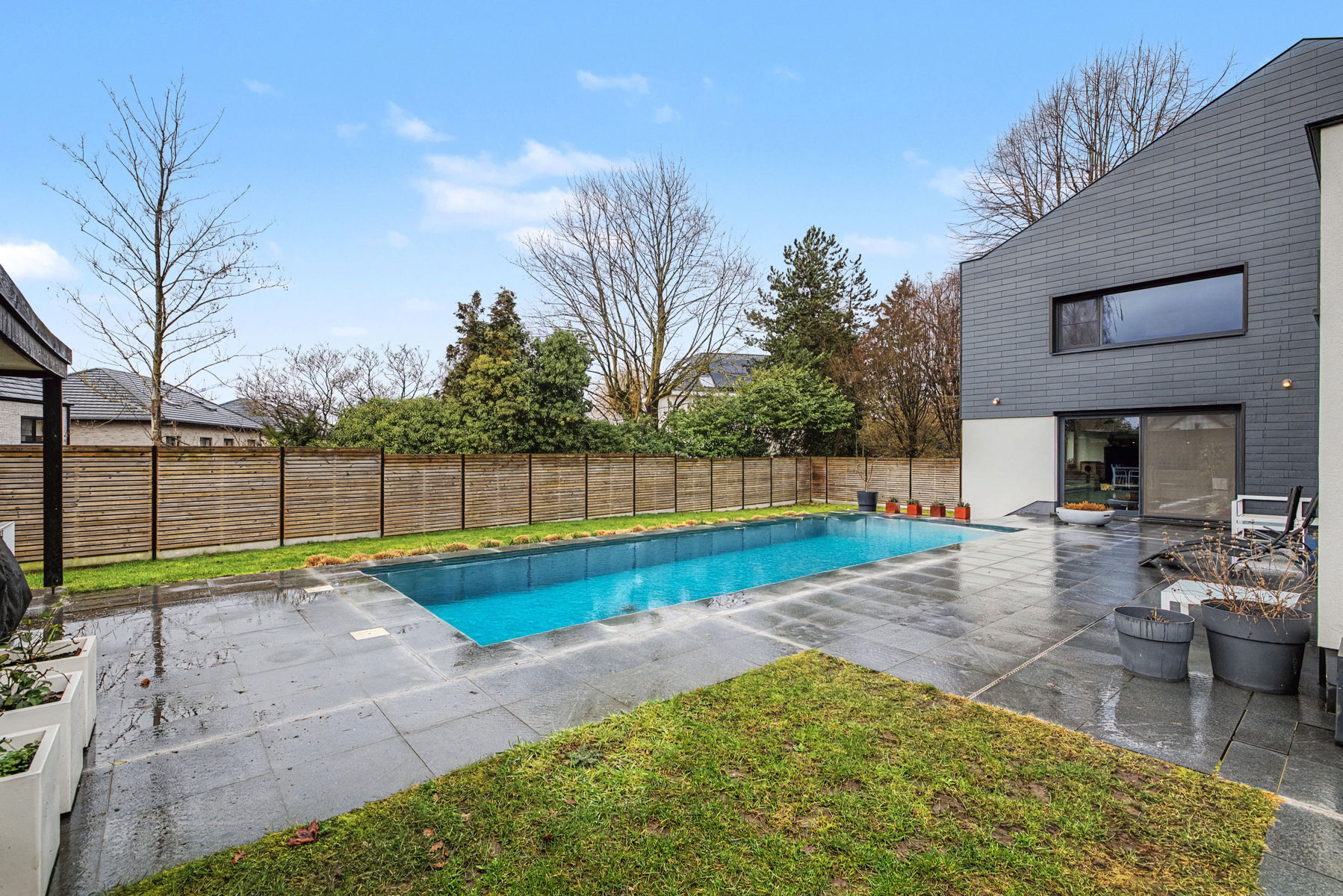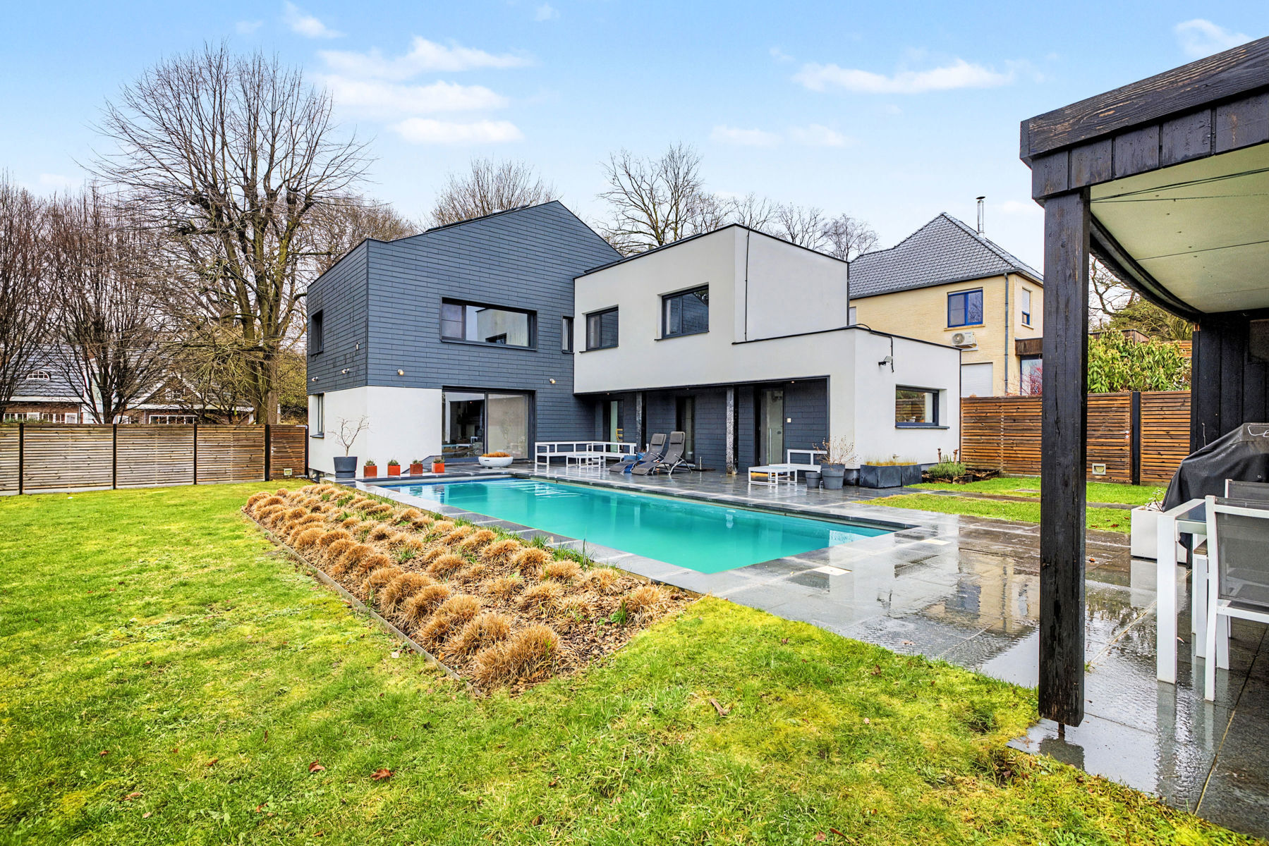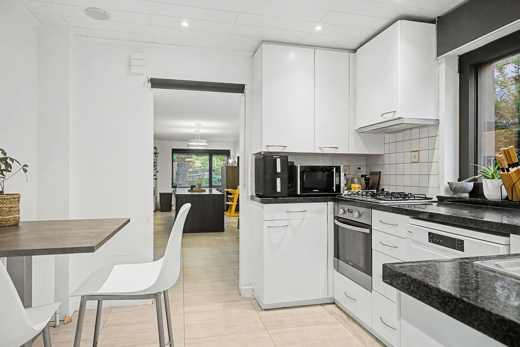 Dans la très prisée Petrus Paulus Rubenslaan à Merelbeke se trouve cette maison mitoyenne entièrement rénovée (2020) et prête à emménager, avec piscine chauffée et emplacement exceptionnel. Vous y vivrez au calme tout en étant à proximité des écoles, des commerces, des transports en commun et des principales voies d'accès. La maison vous accueille dans un hall d'entrée qui mène à un salon particulièrement confortable avec une cheminée à insert et une vue magnifique sur le jardin et la piscine avec volet roulant de sécurité. À côté se trouvent la salle à manger spacieuse avec poêle à pellets et la cuisine équipée. Il y a également un débarras/buanderie pratique avec douche et toilettes séparées.