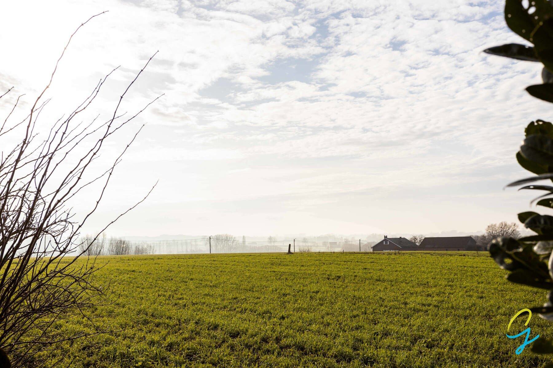 Située le long d'une route facile d'accès et entourée de vastes champs, elle offre une combinaison unique de charme rural et d'accessibilité pratique. Le terrain est entouré de verdure et vous garantit une vue magnifique sur les champs et les prairies environnants.