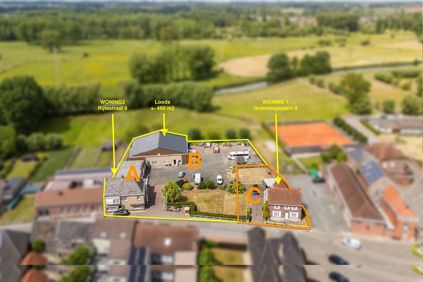 Ce projet d'investissement comprend quatre lettres cadastrales, divisées en deux maisons et un hangar.