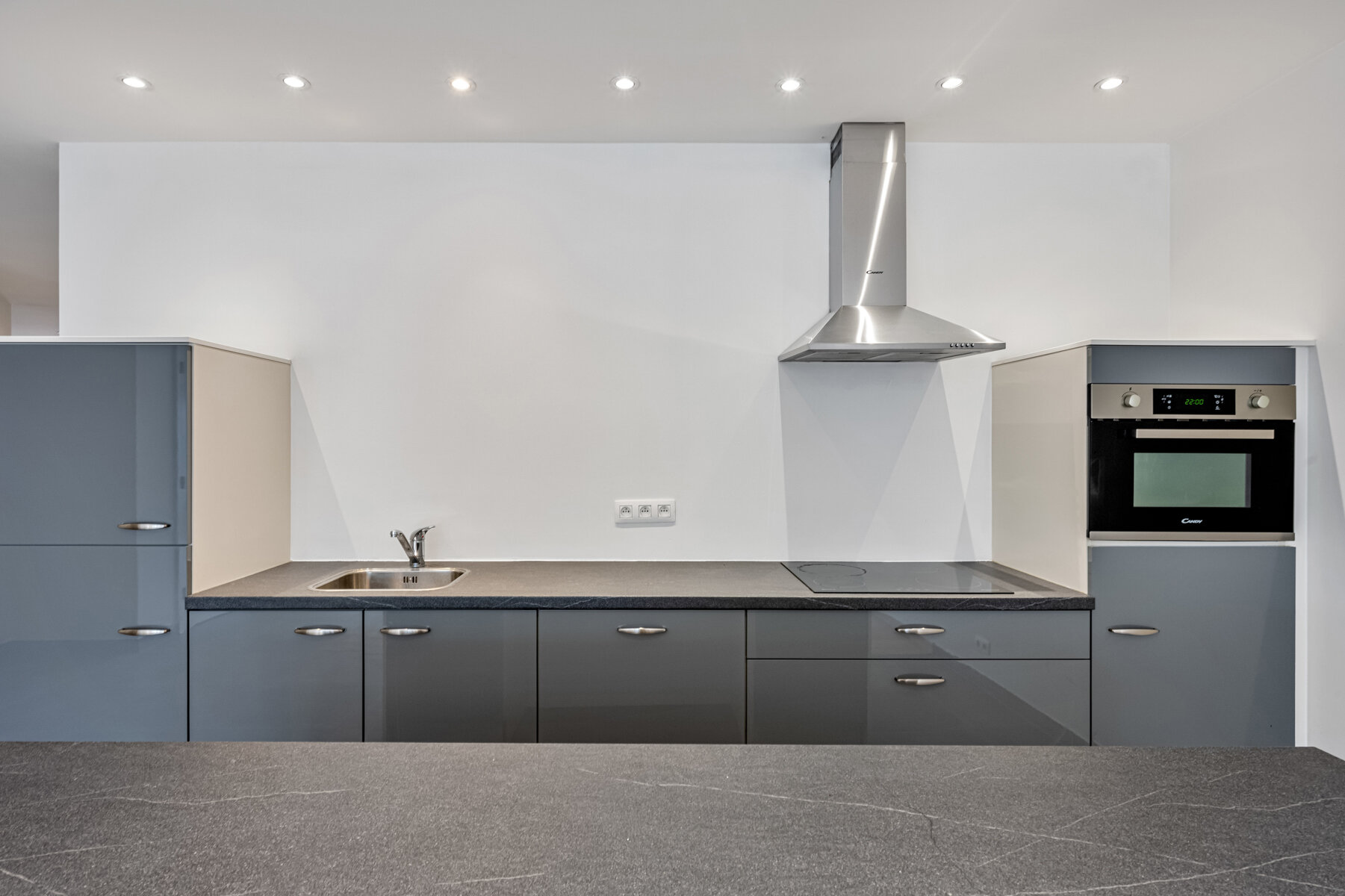 Bij het binnenkomen betreed je een grote leefruimte, deels in massieve parket, met open keuken, die veel lichtinval geniet en aangenaam ruim aanvoelt.