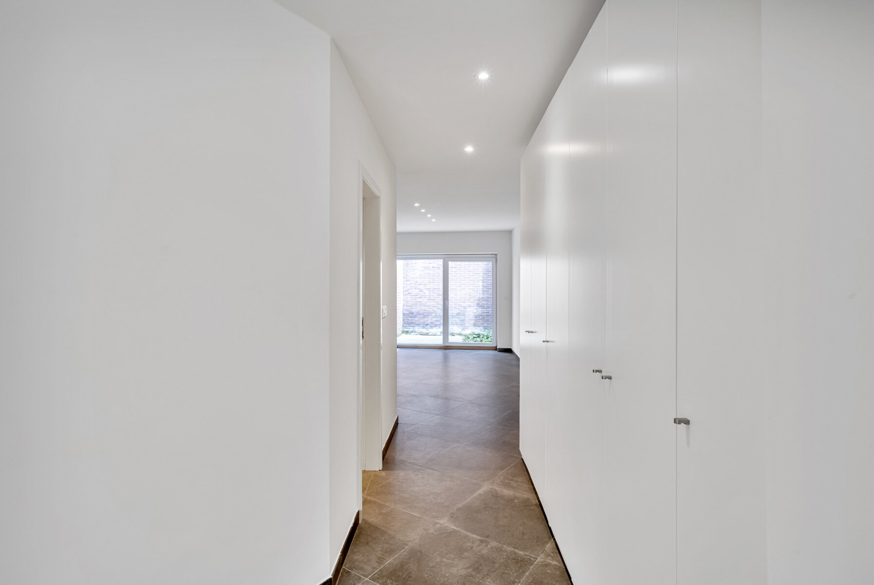 In een recente residentie met lift, op wandelafstand van het station, bevindt zich dit ruime en lichtrijke appartement op het gelijkvloers. Scholen, winkels en openbaar vervoer liggen op minder dan 150 meter.