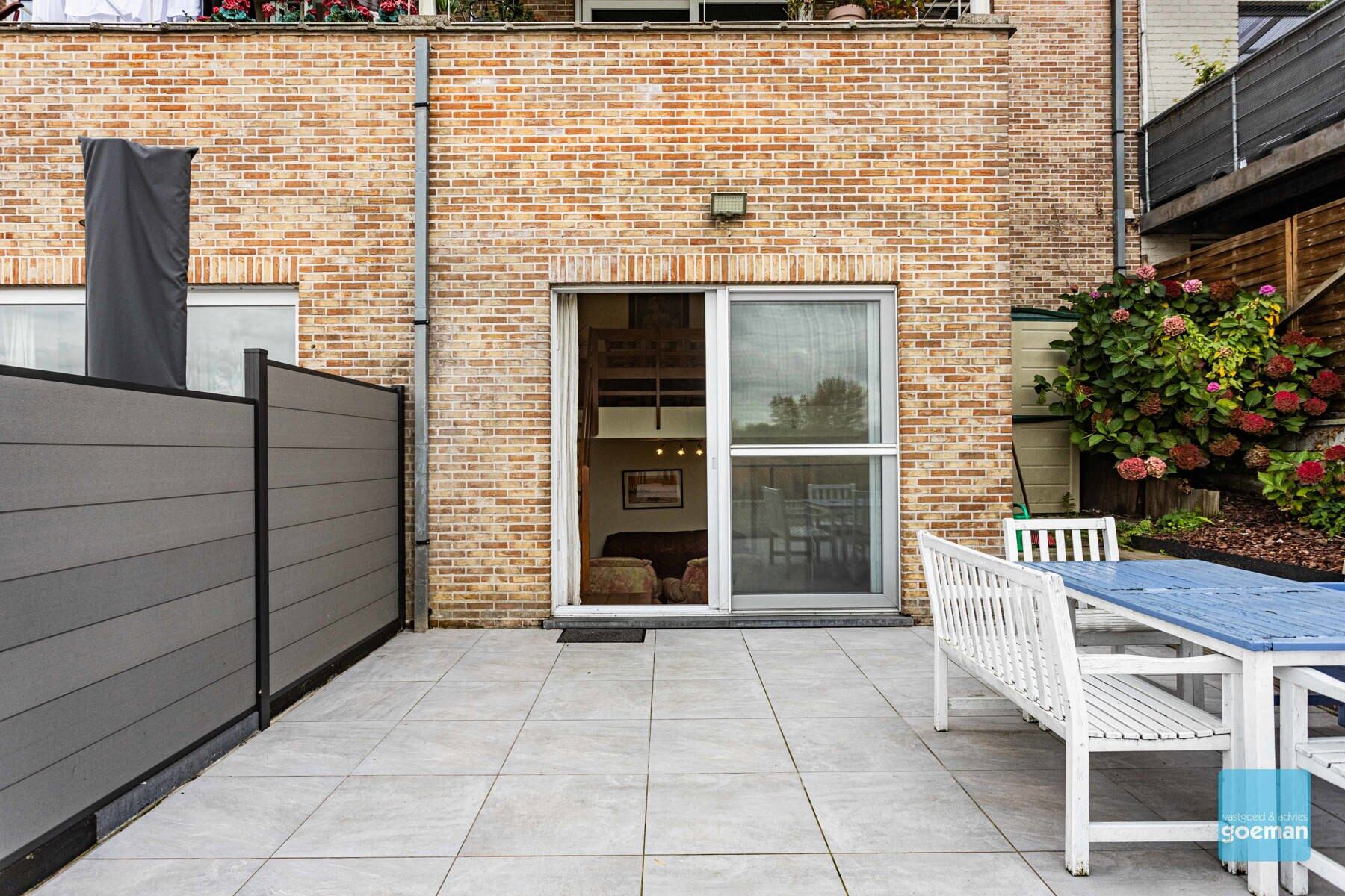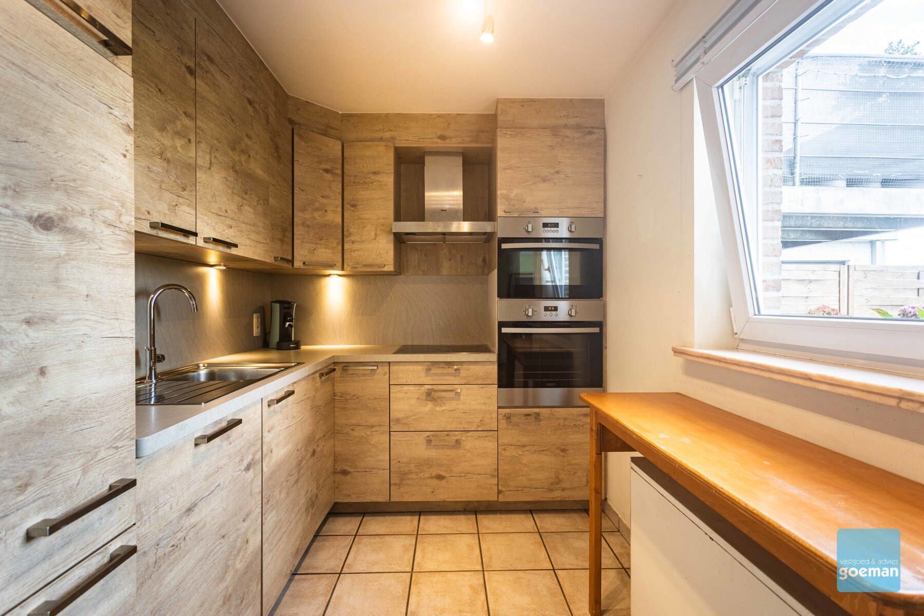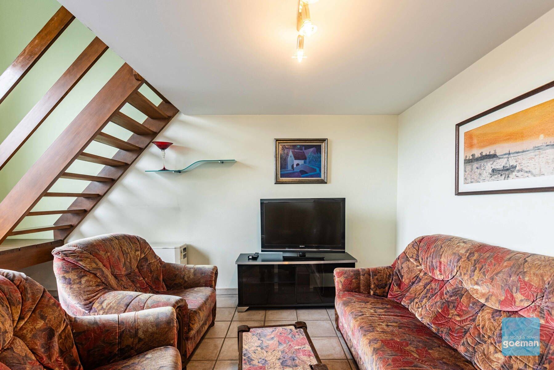 Indeling : inkomhal, woonkamer met open keuken en schuifraam naar ruim terras, 2 slaapkamers en een badkamer.