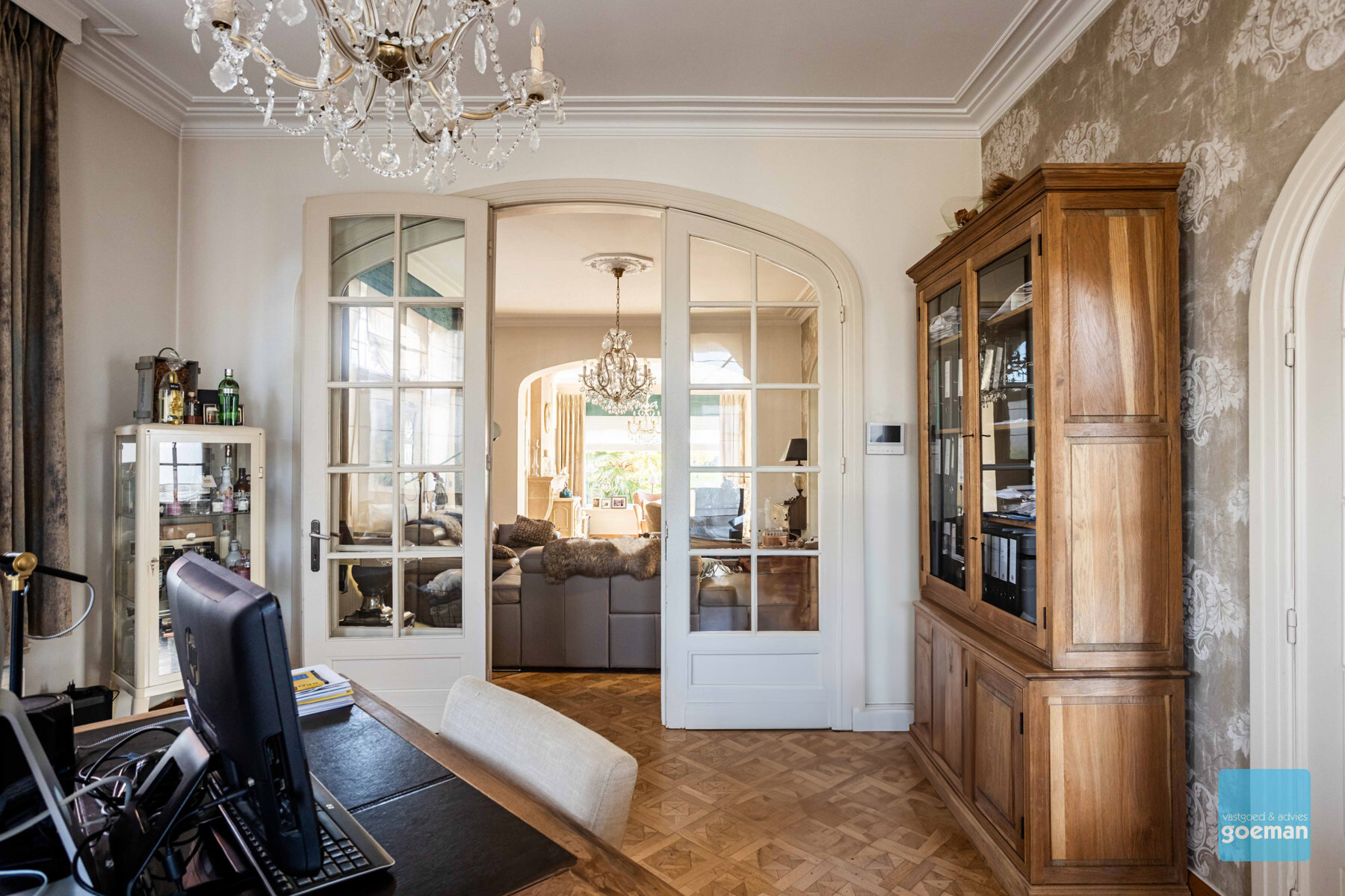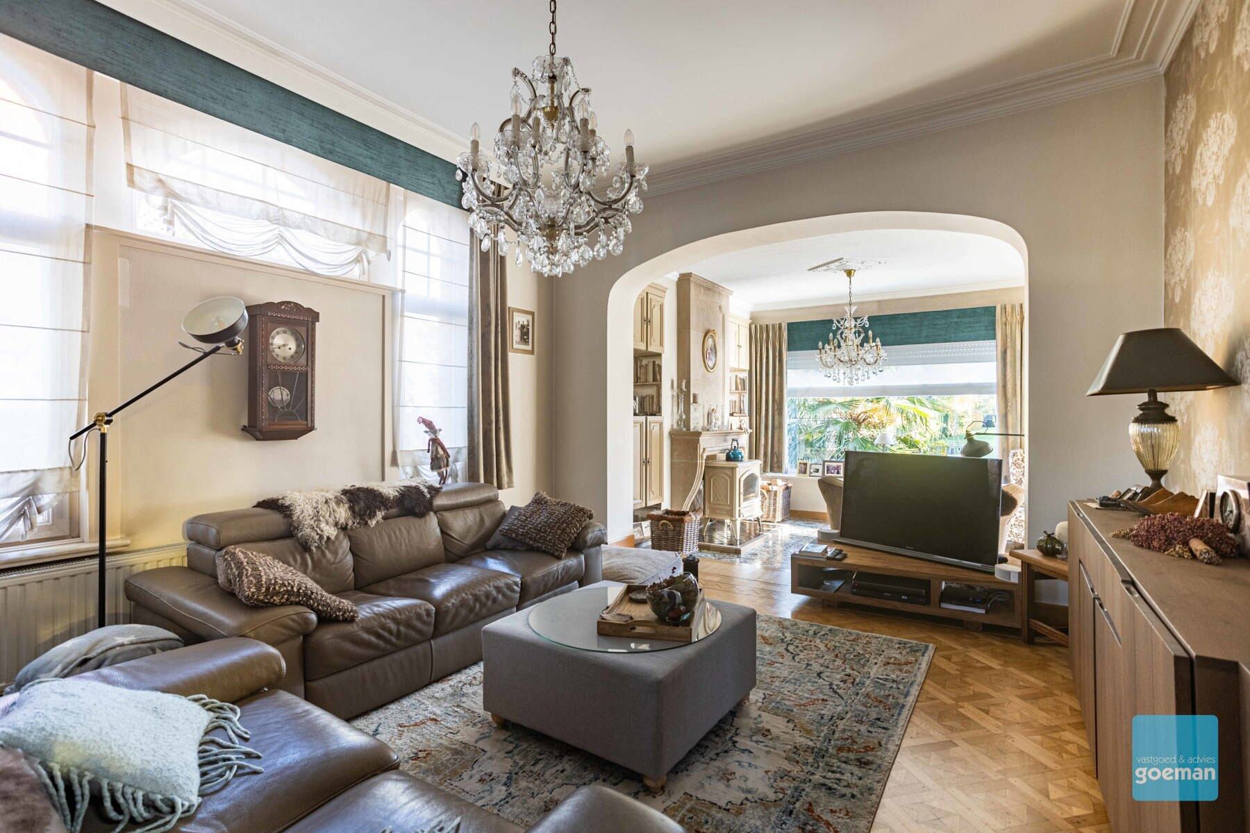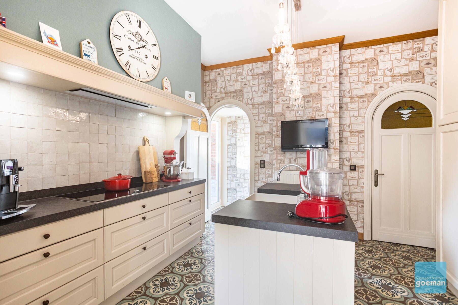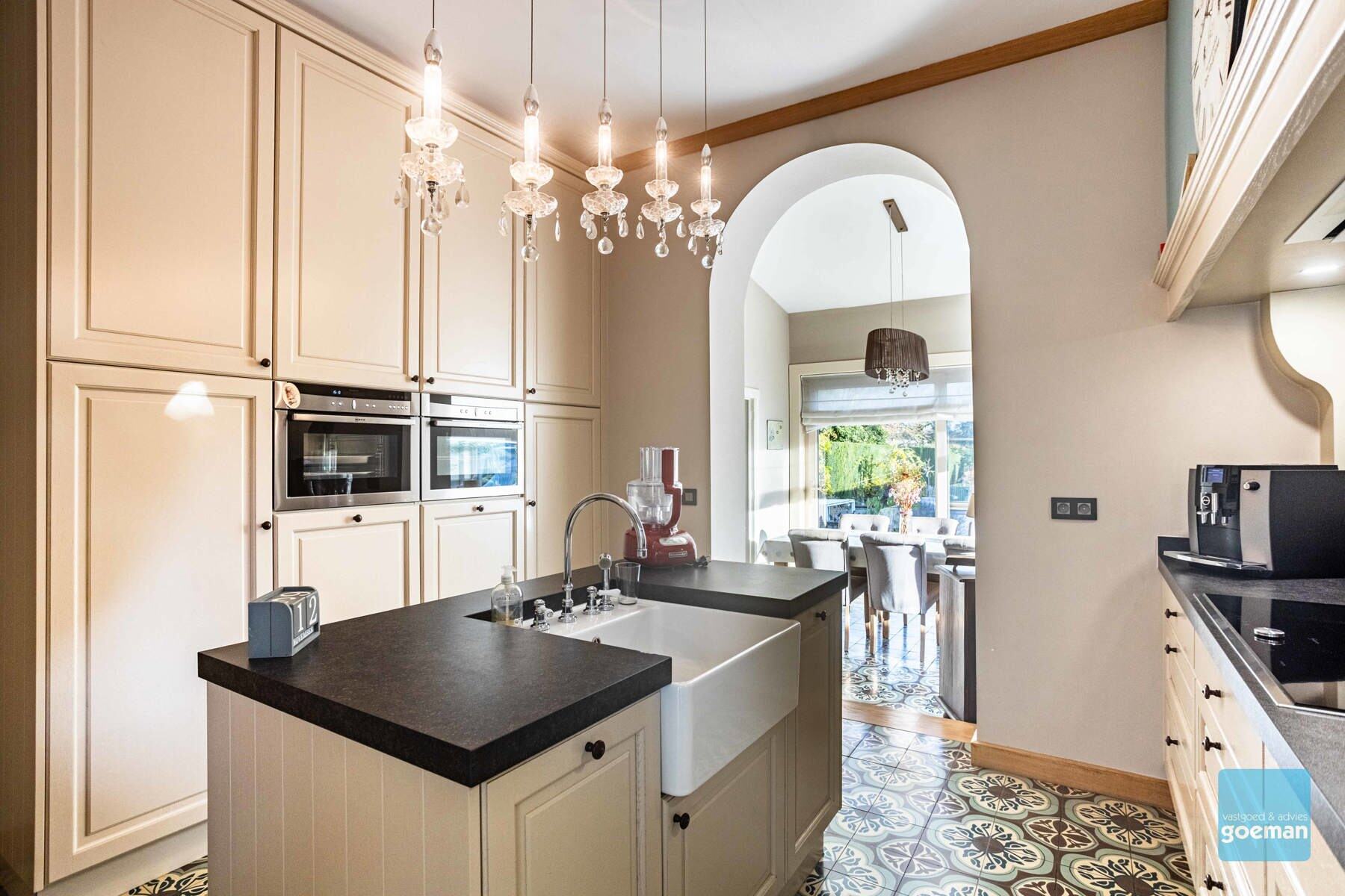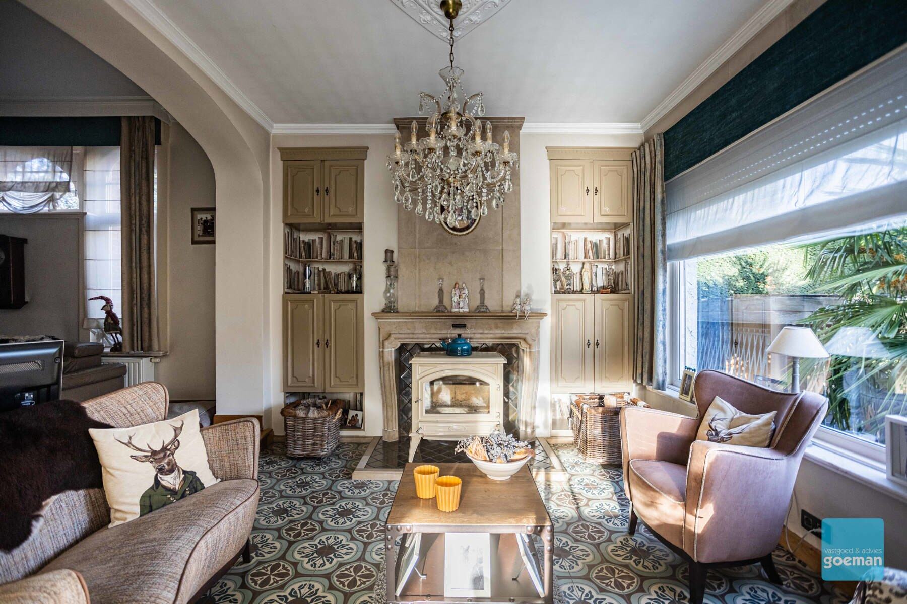TE KOOP in Wichelen - prachtige art deco villa dd 1932 op een perceel van meer dan 30 are Deze villa kreeg een totaalrenovatie in 2015 met behoud van de ziel en het karakter van weleer. De authentieke elementen werden zoveel mogelijk behouden maar uiteraard werd er gerenoveerd met aandacht voor energiezuinigheid en hedendaags comfort. De mooi aangelegde tuin met prachtige bijgebouwen, nl atelier van 80m² en ruime garage bieden nog meer troeven aan deze unieke eigendom. Elektriciteit is volledig conform (domotica). De indeling van de woning. De kelderverdieping is toegankelijk via een vroegere dienstingang. Op het gelijkvloers vindt u een grote inkomhal met aansluitend bureel en leefruimte met zeer veel lichtinval. Totaal vernieuwde keuken met hoogwaardige toestellen. Apart toilet. Op de eerste verdieping zijn er drie slaapkamers, een badkamer met bad en toilet. Zolderverdieping ideaal voor opslag. Breng je graag een bezoek? Contacteer ons snel om je afspraak te plannen 052 52 80 30 - info@goemanvastgoed.be