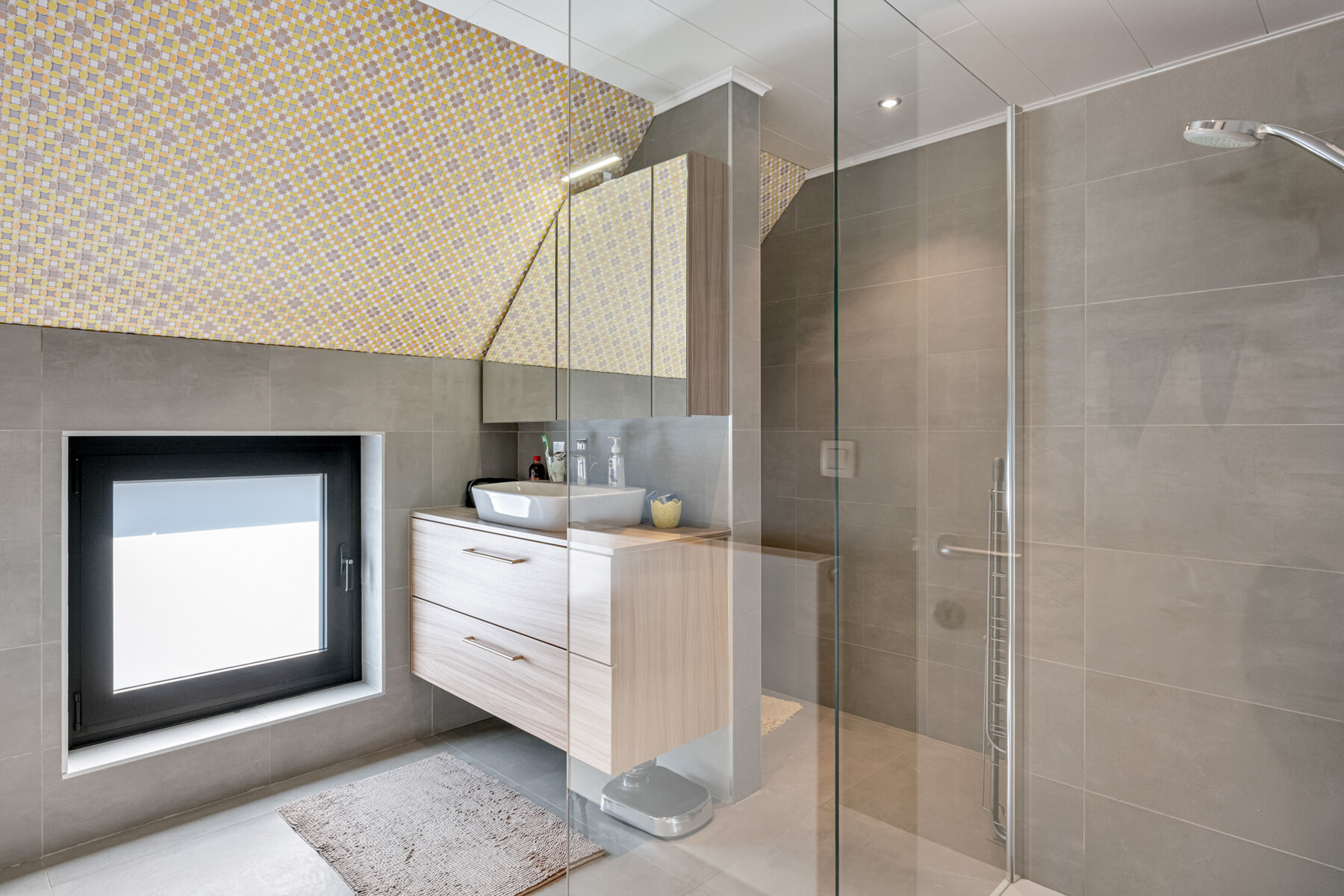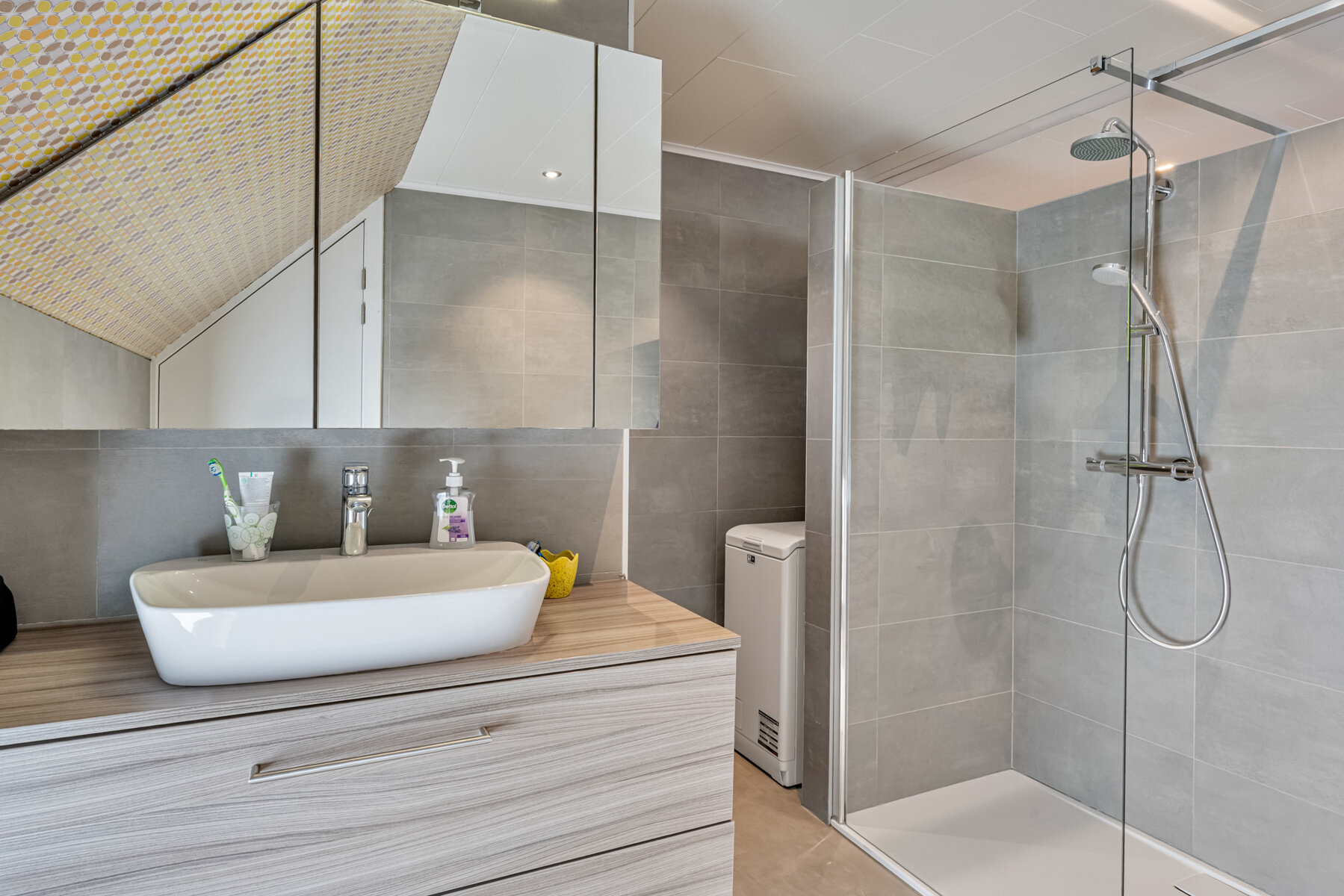 De keuken heeft een gezellig lichtrijk terrasje, en sluit naadloos aan bij de eetgelegenheid en leefruimte. De trap leidt u naar een eerste slaapkamer met kwaliteitsvolle en oogstrelende badkamer. Een tweede slaapkamer op het bovenste verdiep biedt u alle rust en comfort. Dankzij de doordachte indeling en hoogwaardige afwerking geniet u hier van een aangename en lichtrijke leefomgeving.