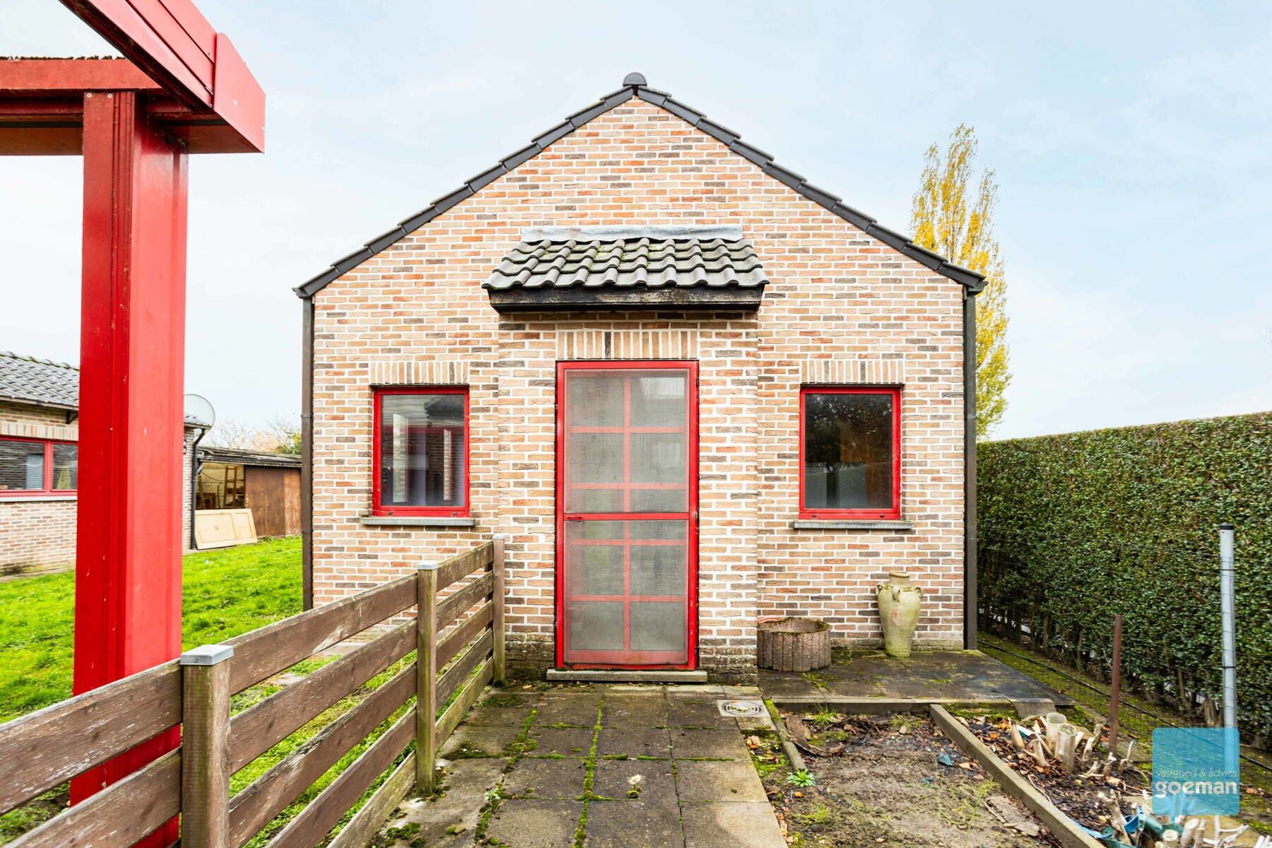 Te koop te Aalst! In een rustige straat te Hofstade (Aalst) vindt u deze instapklare gezinswoning op een perceel van maar liefst 877 m², met zicht op de achtergelegen velden. Dankzij de ruime bewoonbare oppervlakte, het bijgebouw van 60 m² en de twee garages biedt deze eigendom tal van mogelijkheden. Bij het binnenkomen treft u een ruime inkomhal met gastentoilet en een aparte bureauruimte, ideaal voor wie van thuis uit werkt of nood heeft aan een afzonderlijke praktijkruimte. Vanuit de hal komt u in de aangename en lichtrijke leefruimte. De living sluit naadloos aan op de geïnstalleerde keuken die rechtstreeks toegang biedt tot een praktische berging. Op de eerste verdieping bevinden zich drie ruime slaapkamers. De badkamer is uitgerust met alle nodige voorzieningen om aan de behoeften van een modern gezin te voldoen. Bovenaan beschikt de woning over een zolderruimte die momenteel gebruikt wordt als stockage. Buiten geniet u van een royale tuin met een prachtig open zicht op de achtergelegen velden. Het perceel is uitgerust met een ingebouwde garage én een vrijstaande garage, wat meer dan voldoende parkeerruimte biedt. Achteraan in de tuin staat bovendien een bijkomend gebouw van 60 m², dat kan worden ingericht als extra opslagruimte, atelier, hobbyruimte, studio of polyvalente werkruimte. Aanwezigheid van zonnepanelen! Deze woning vormt een ideale keuze voor wie op zoek is naar ruimte, functionaliteit en een rustige ligging met groen uitzicht. Wil jij deze instapklare en energiezuinige woning zelf ontdekken? Contacteer Margot op 0470 06 40 60 of mail naar margot@cornelis-goeman.be voor meer informatie of een bezoek.
