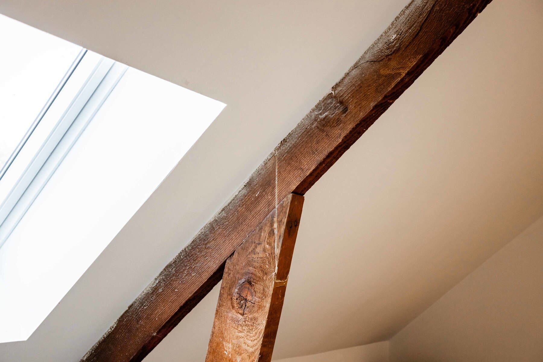 Via een vaste trap bereikt men het zolderverdiep, waar zich de derde en vierde slaapkamer bevinden.