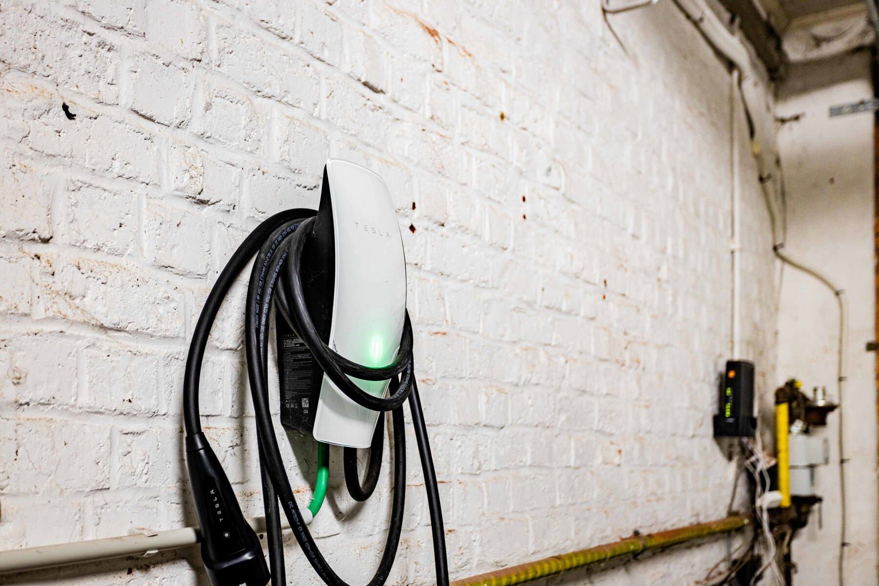 Het gelijkvloers omvat een inkomhal, apart toilet, een lichtrijke leefruimte met zicht op het groen, een volledig ingerichte keuken, een apart toilet en een inpandige garage met laadpaal.