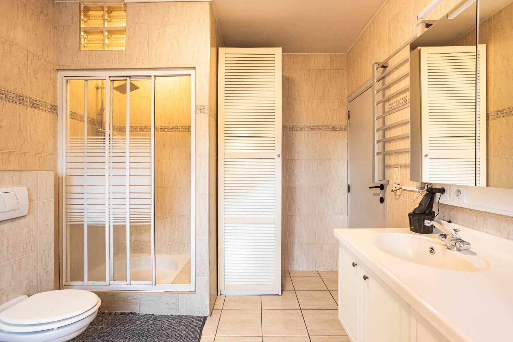 Via de inkomhal, kom je in de aangenaam en lichtrijke leefruimte. Aansluitend vind je een uitgeruste keuken, die uitkijkt op de prachtige tuin, een echte meerwaarde voor wie houdt van rust en groen. Verder beschikt de woning op het eerste verdiep over 3 volwaardige slaapkamers en een grote badkamer met alle comfort.