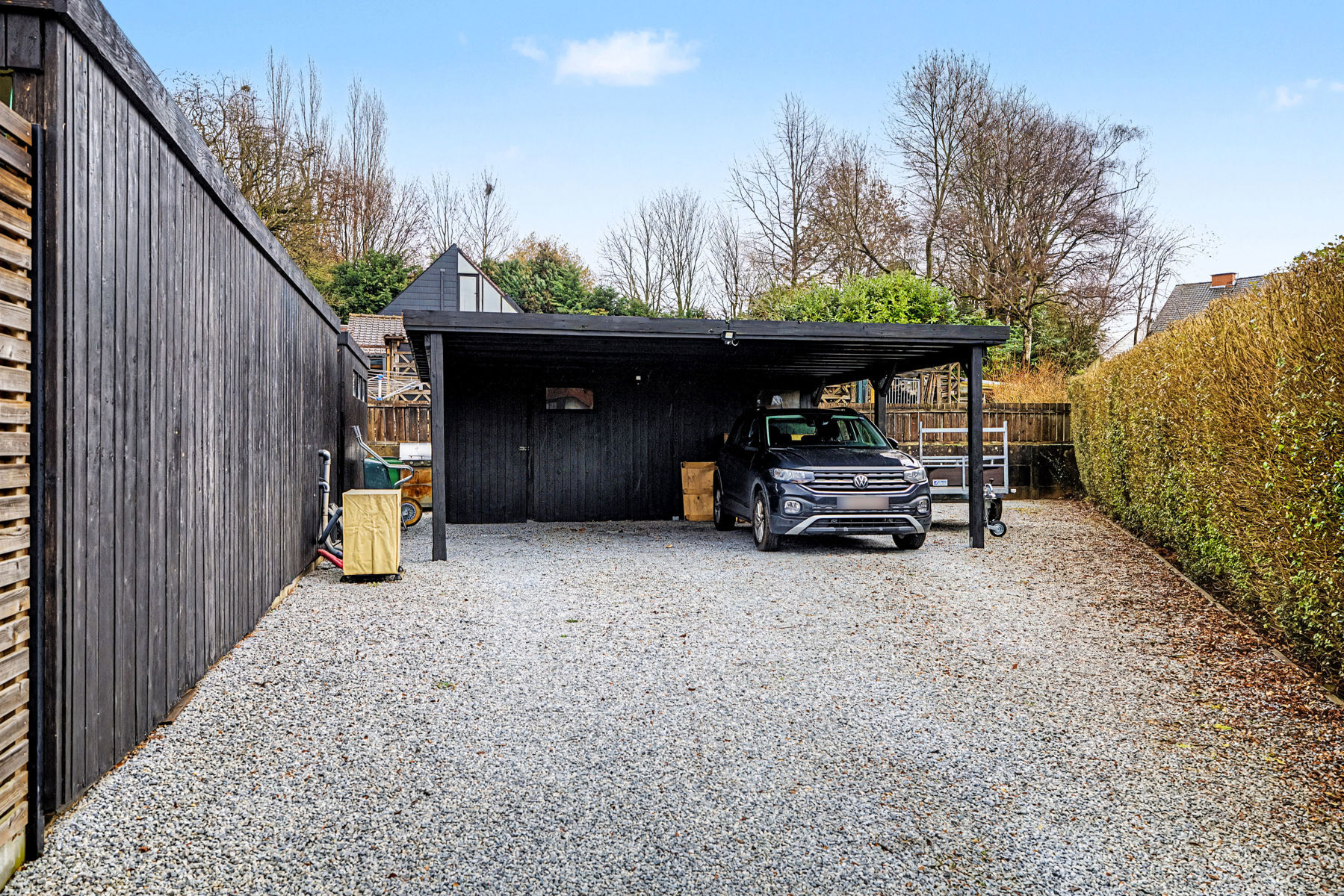 De tuin is een echte troef met twee tuinhuizen (waarvan één met overkapping) en via de tuinpoort bereikt u de achteroprit met dubbele carport en extra berging.