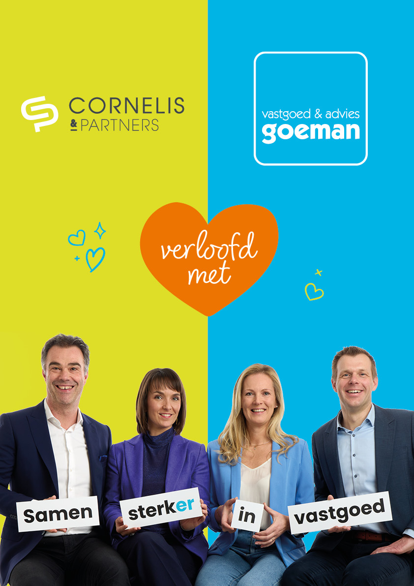 Met deze fusie leggen Goeman Vastgoed en Cornelis & Partners de basis voor een nog sterkere positie in de markt. Klanten en partners kunnen rekenen op onze sterke dienstverlening en kwaliteit, maar met de voordelen van een groter bereik en een sterker team.